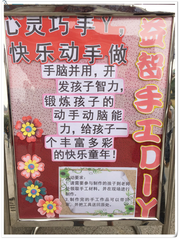 手腦并用,開發(fā)孩子的智力,鍛煉孩子動手動腦能力,給孩子一個豐富多彩快樂的童年。依托深圳市學前教育家園共育公益指導項目,11月6日到公明紅花山社區(qū)進行“心靈巧手Y,快樂動手做”益智手工DIY親子活動。旨在提高孩子的創(chuàng)造能力及動手動腦能力,同時也增進親子之間的情感。