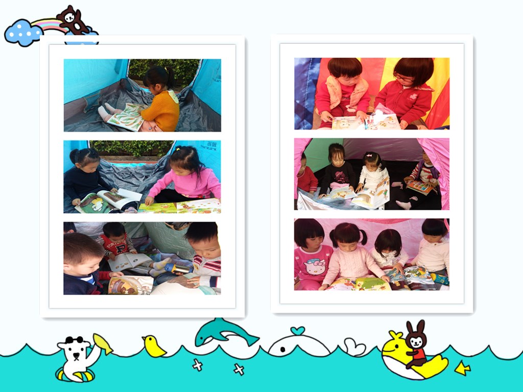 在活動接近尾聲時(shí),我們可愛的小班級組的小朋友們迎來了他們有趣的帳篷換書讀書會。小朋友們帶著自己的好同學(xué)、好伙伴,三五成群地進(jìn)入帳篷中,安靜、認(rèn)真地閱讀著別的小朋友帶來的有趣的書籍,共同體驗(yàn)著好書共讀的趣味與美妙。