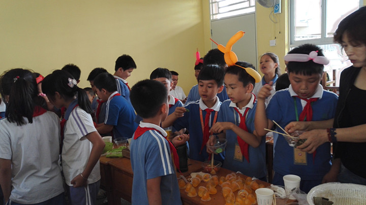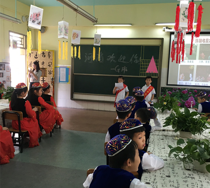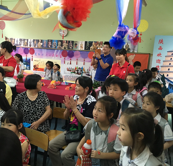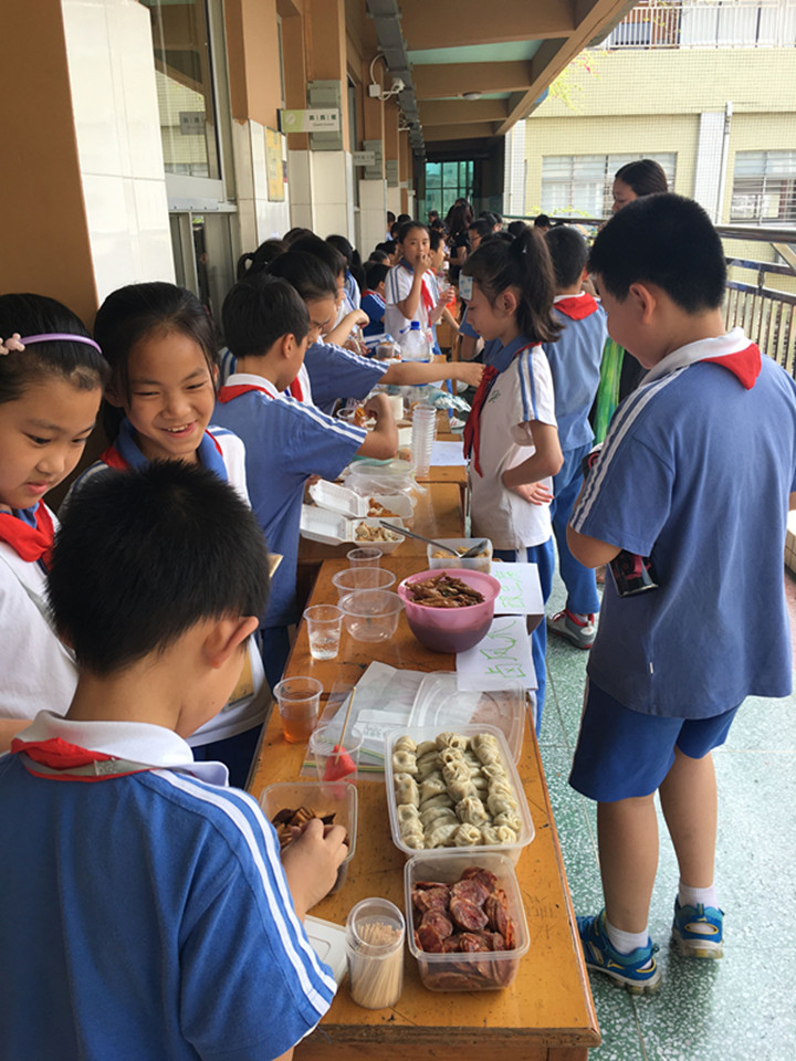 5月27日,適逢“端午”佳節(jié)前夕,全校師生、家長也迎來了本屆文化節(jié)最吸人眼球、最聚集味蕾的“地域風情游園”與“美食嘉年華活動”。下午, 教室里面,孩子們正為游園的客人們演繹著“陜西皮影戲”、“三國火燒赤壁”、“徽州茶藝箏韻”、“井岡山革命贊歌”等諸多文化曲目。老師們則為孩子們分發(fā)著義賣活動的“代金券”,準備到各班攤位競相拍賣美食,以模擬售賣活動來親身體驗中華飲食文化。