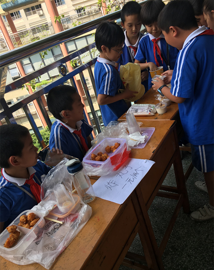 活動中,經(jīng)營賣場的孩子吆喝聲陣陣,八仙過海般,竭盡所能地替自己的班級多賣出一些貨品。購買的孩子們一圈圈地走一圈圈地看,在解了嘴饞的同時,非常直觀地了解到了每個地方的美食特色,增長了見識。