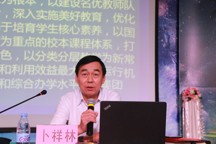 特級(jí)教師、學(xué)校卜祥林校長(zhǎng)會(huì)上解讀了新學(xué)年重點(diǎn)工作,明確了新學(xué)年“辦優(yōu)質(zhì)、特色、品牌學(xué)?!钡墓ぷ髂繕?biāo),提出了“以立德樹(shù)人為根本,以建設(shè)名優(yōu)教師隊(duì)伍為保證,全面貫徹黨的教育方針,深入實(shí)施美好教育,優(yōu)化學(xué)校要素結(jié)構(gòu),完善基于培養(yǎng)學(xué)生核心素養(yǎng),以國(guó)際理解教育、藝體教育和創(chuàng)客教育為重點(diǎn)的校本課程體系,打造小班化、個(gè)性化為特色,以分類分層教學(xué)為新常態(tài)的精品課程,健全教育資源配置和利用效益最大化的運(yùn)行機(jī)制和保障機(jī)制,全面提高教育質(zhì)量和綜合辦學(xué)水平,為集團(tuán)20年團(tuán)慶獻(xiàn)禮”的總體工作要求。