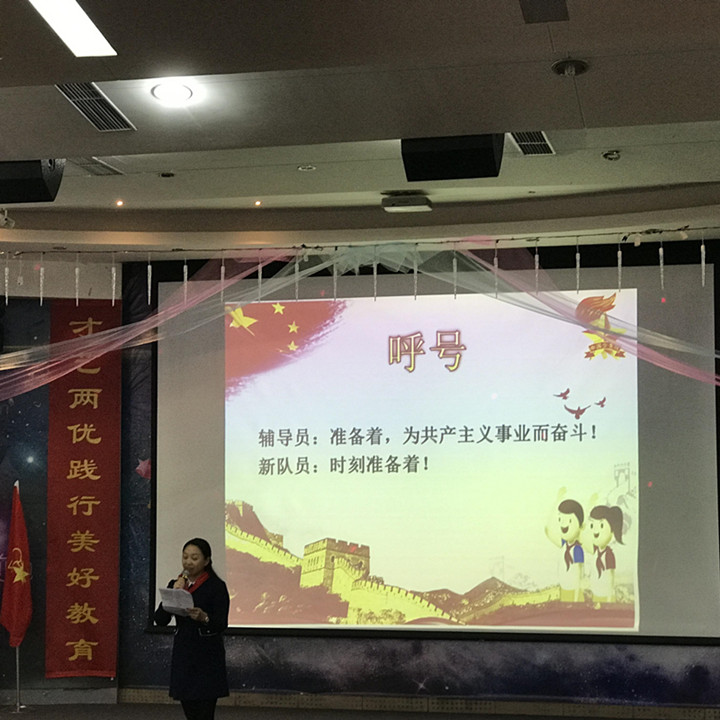 最后,少先隊大隊輔導員張丹主任帶領隊員們呼號,入隊儀式在隊員們“時刻準備著”的呼號聲中圓滿結束。