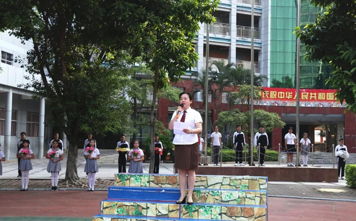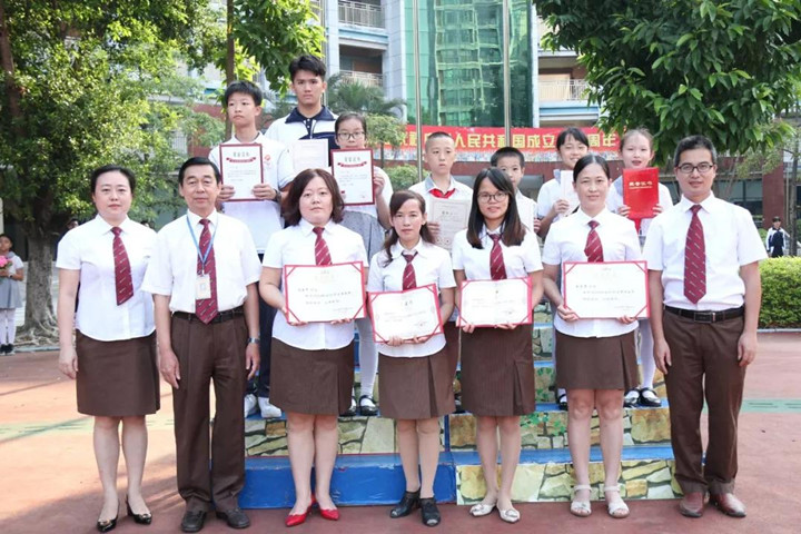 2018年10月8日,國慶節(jié)返校第一天,我校舉行了隆重的升旗儀式。在儀式上,對近段時間獲得市級、區(qū)級獎勵的師生進行了表彰。