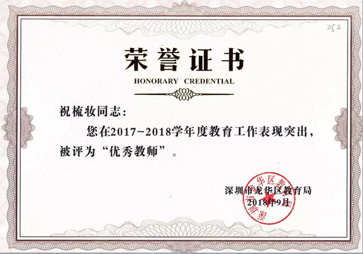 龍華區(qū)優(yōu)秀教師獲得者:祝梳妝老師