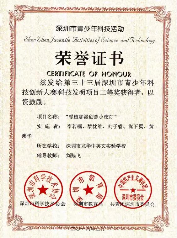 第33屆深圳市青少年科技創(chuàng)新大賽科技發(fā)明項目二等獎獲得者:李若桐、黎忱維、劉子睿、嵩下翼、黃澳華