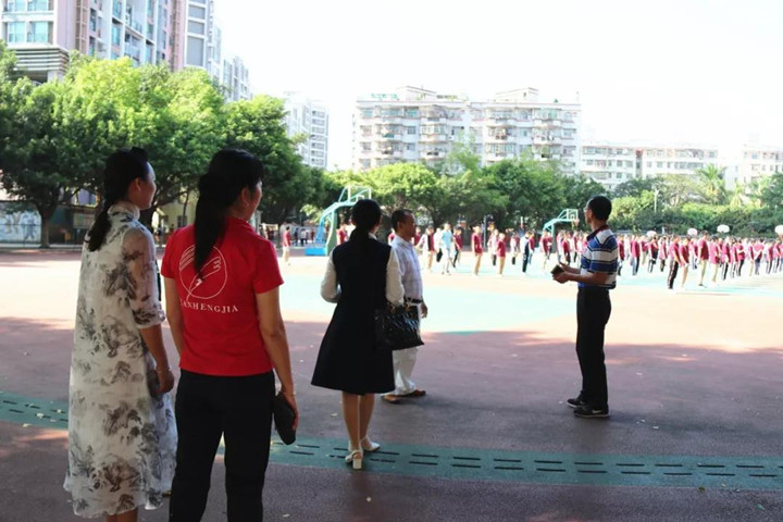 包強平責任督學(xué)、詹雪光督學(xué)觀看學(xué)生陽光體育活動