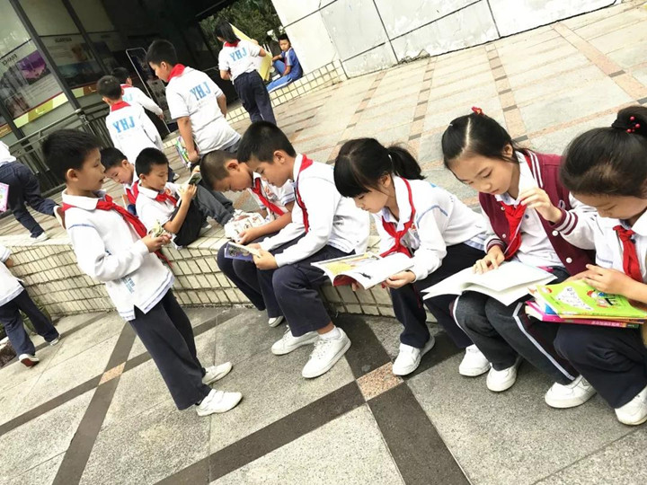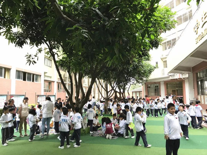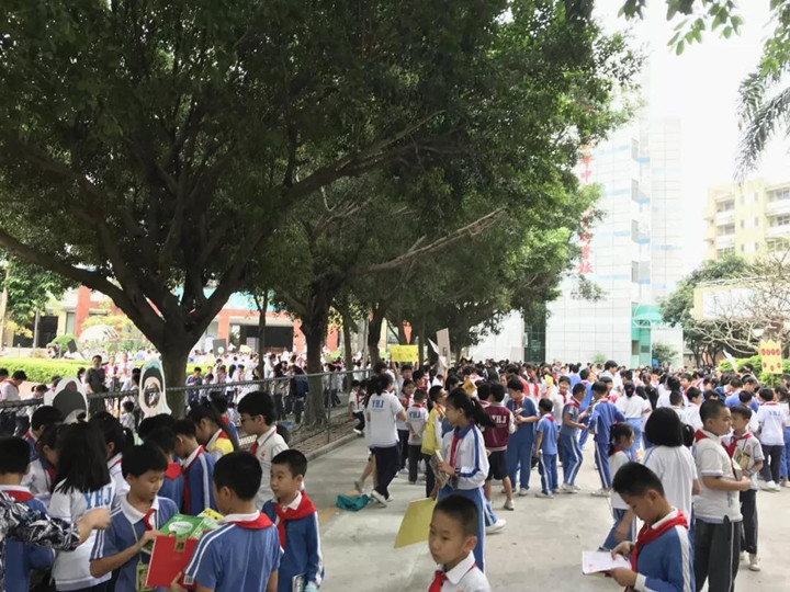 2018年11月16日下午,龍華中英文實(shí)驗(yàn)學(xué)校小學(xué)部圖書拍賣跳蚤市場(chǎng)人頭攢動(dòng),校道兩邊、操場(chǎng)內(nèi)外、足球場(chǎng)上46個(gè)攤位各種書籍、招牌、海報(bào)鱗次櫛比。