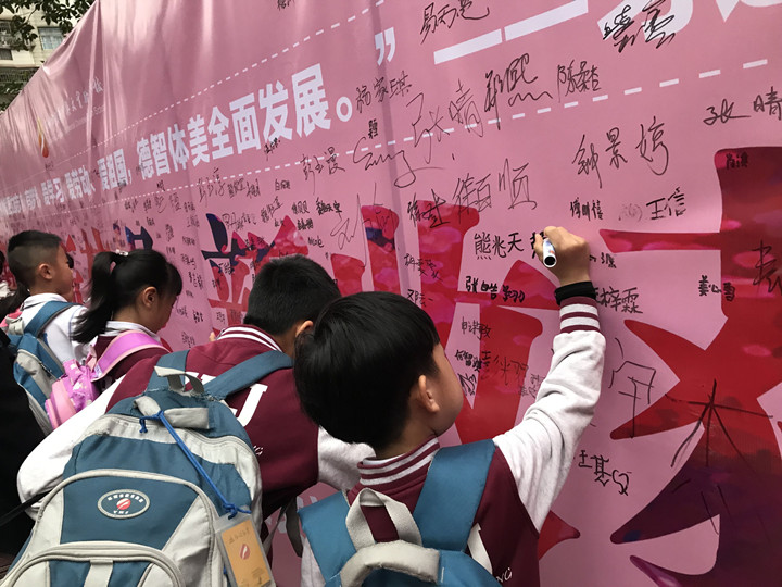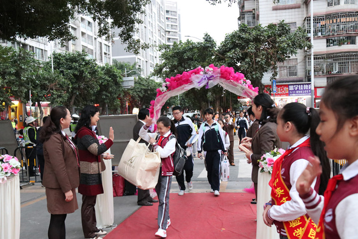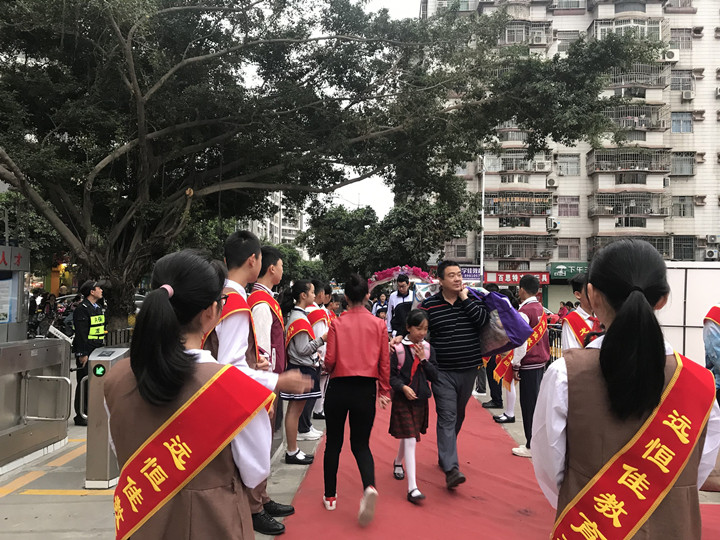 千里之行,始于足下。2019年02月18日,深圳市龍華中英文實(shí)驗(yàn)學(xué)校迎來一場別致的學(xué)生歡迎禮,引得師生、家長嘖嘖稱贊。嘹亮的歌曲,鮮紅的地毯,炫目的光榮榜,創(chuàng)意的簽名墻等筑成一道道靚麗的風(fēng)景,喜迎同學(xué)們到校。
