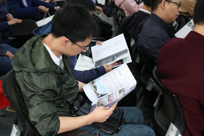 考察團(tuán)成員閱讀學(xué)校建設(shè)資料