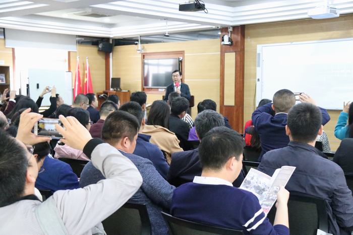 參觀結(jié)束,我校卜祥林校長(zhǎng)對(duì)考察團(tuán)成員作了題為《辦優(yōu)質(zhì)高端名校,育多元精英人才》的學(xué)校建設(shè)與發(fā)展講座。講座中,卜校長(zhǎng)重點(diǎn)介紹了“美好教育”辦學(xué)理念、“五星十最”“六藝十能”德育及能力課程、“一體兩翼”(國(guó)際理解、藝體、創(chuàng)客)特色建設(shè)成果等方面的情況。卜校長(zhǎng)還用我校中高考取得的良好成績(jī),以及我校參加區(qū)調(diào)考六個(gè)年級(jí)全部位列民辦學(xué)校首位的良好成績(jī),向來(lái)賓剖析了“小班化”教學(xué)改革對(duì)教學(xué)質(zhì)量提升的良好推動(dòng)作用,同時(shí)向來(lái)賓分析了民辦學(xué)校走“優(yōu)質(zhì)、高端”辦學(xué)之路的必要性和緊迫性。卜校的講座,理念先進(jìn)、案例充實(shí),受到了來(lái)賓的高度贊同,大家紛紛對(duì)重點(diǎn)內(nèi)容進(jìn)行拍照留存。