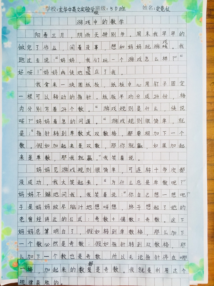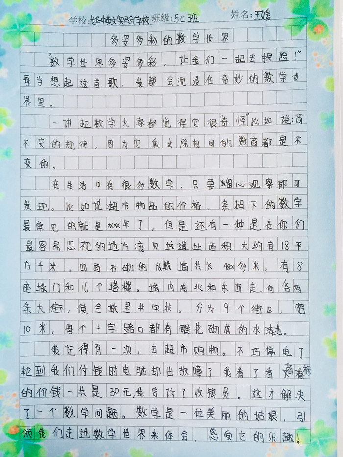 五年級(jí):數(shù)學(xué)作文,用數(shù)學(xué)描述著生活,體會(huì)數(shù)學(xué)來(lái)源于生活,與我們的數(shù)學(xué)息息相關(guān)。