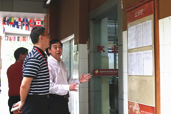 2019年4月19日,深圳市龍華中英文實驗學校掛牌責任督學、龍華中學包強平校長,第六責任區(qū)殷木森、李紹金教研員督學,第六責任區(qū)詹雪光督學助理等一行4人,到校進行了四月督導檢查。本次督導檢查的重點是“校務(wù)管理和制度執(zhí)行情況”。
