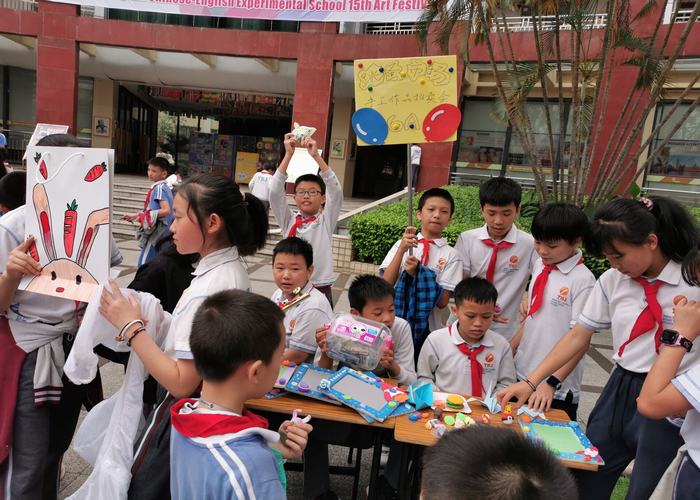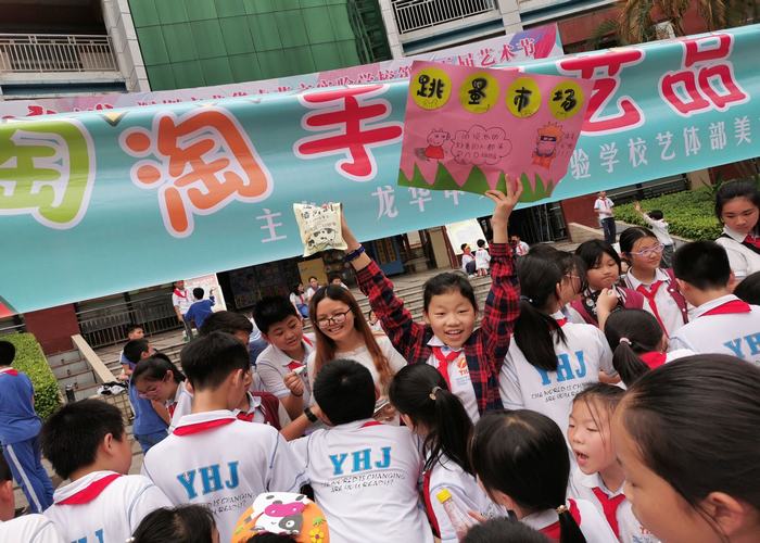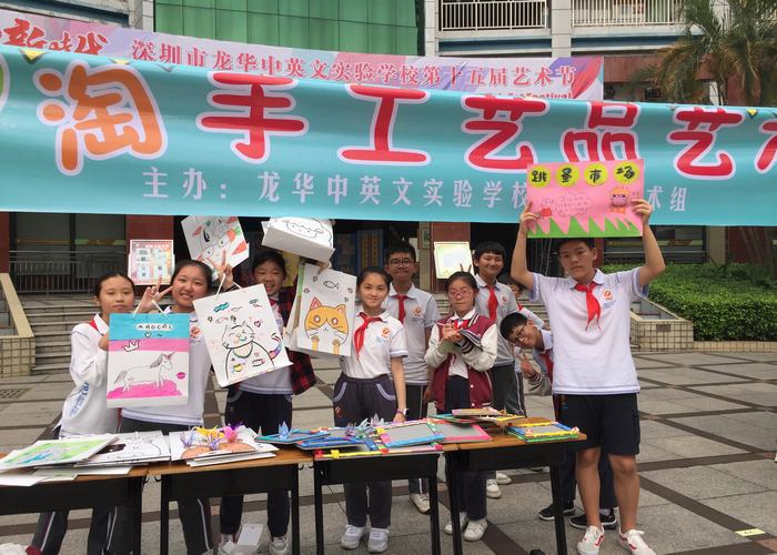 2019年5月10日下午第八節(jié)課時(shí)間,深圳市龍華中英文實(shí)驗(yàn)學(xué)校校園里一片繁忙、熱鬧景象。哦!這是小學(xué)部美術(shù)組舉辦的手工作品跳蚤市場(chǎng)開(kāi)市了。