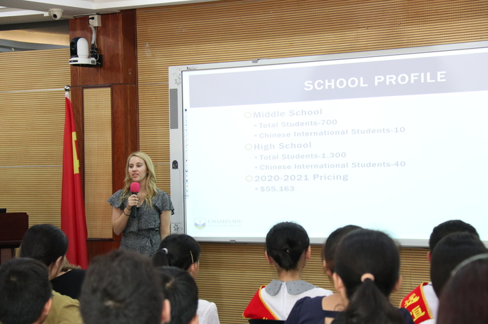 2019年10月18日下午,美國查米納德大學(xué)預(yù)備學(xué)校,奧爾巴尼學(xué)院,邁阿密山谷學(xué)校三所精英高中代表團(tuán)來校參觀訪問,參觀訪問團(tuán)有查米納德國際生負(fù)責(zé)人Brittney,升學(xué)規(guī)劃老師Jennifer,奧爾巴尼學(xué)院招生主任Bramble,邁阿密山谷學(xué)校副校長Susan,IPERC中國區(qū)段女士,趙爽、郝淼等七名成員。遠(yuǎn)恒佳教育集團(tuán)副總裁麥麗芬女士帶領(lǐng)遠(yuǎn)恒佳國際交流中心宋騰主任、學(xué)校金玉善副校長等集團(tuán)及學(xué)校干部接待了來訪。