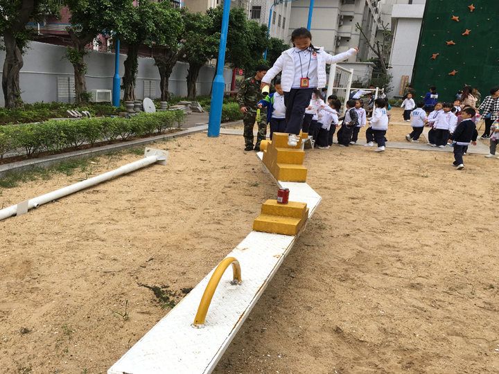“你們知道消防叔叔為什么厲害嗎?那可要堅持練習哦!”孩子們隨大隊長來到他們練習的地方,剛開始孩子們有些害怕,更多地的是驚喜,在消防叔叔的鼓勵下慢慢都參與各種練習中,學習消防叔叔的堅強和勇敢。