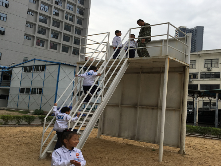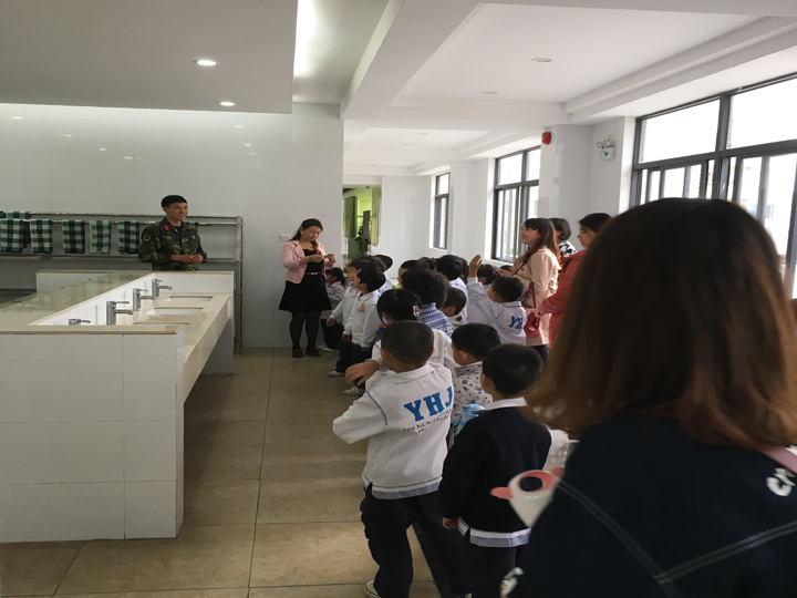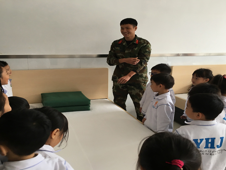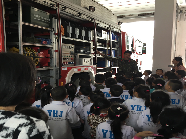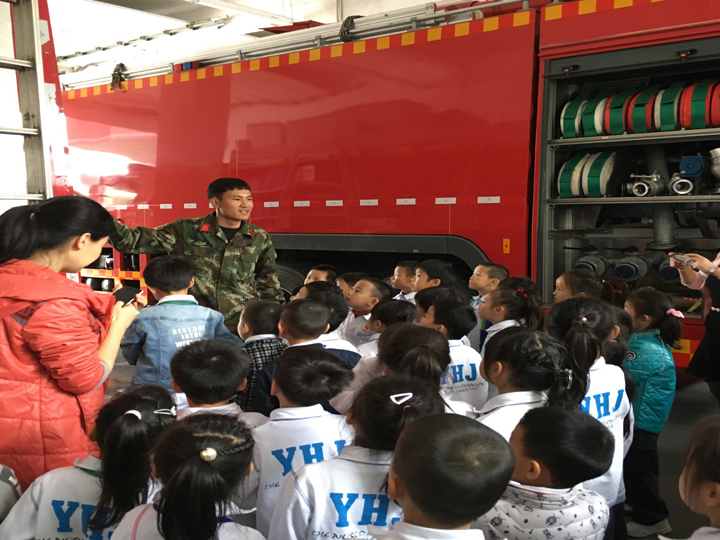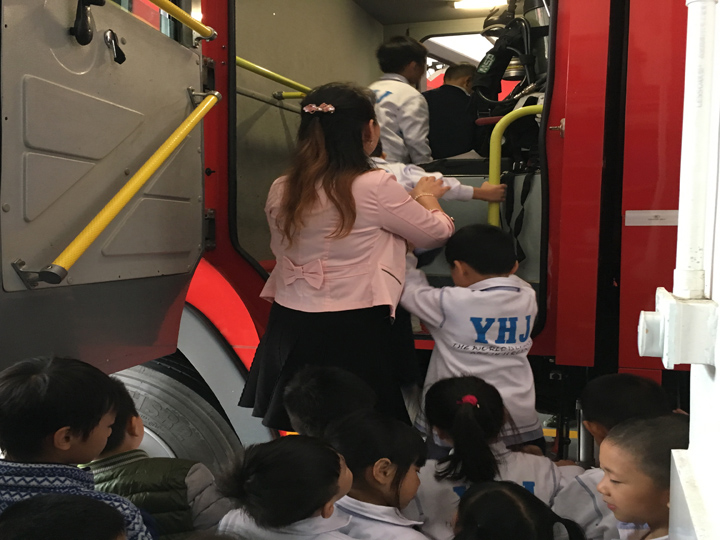 “你們平時看見過消防車嗎,知道里面裝了什么嗎,怎么運用的,知道救援的方法嗎?”針對這些問題,消防大隊中隊長詳細為孩子們進行了講解。在中隊長通俗易懂的講解下,孩子們了解了消防車輛及器材裝備,還示范了云梯升降救援和攀爬上墻的過程。隨后,中隊長還帶領孩子們們參觀了消防叔叔的寢室,參觀的孩子們在看到疊得方方正正的被子紛紛贊嘆不已。