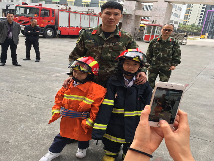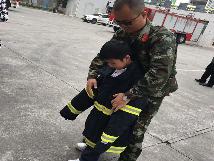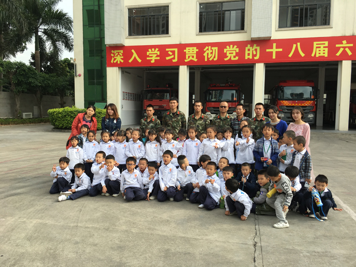 12月6日上午,公明中英文學校OA、OB兩個班的孩子在老師和家長義工的帶領下到公明消防中隊進行實踐活動。在消防大隊中隊長的帶領下,孩子們體驗學習消防知識和消防器具的應用。