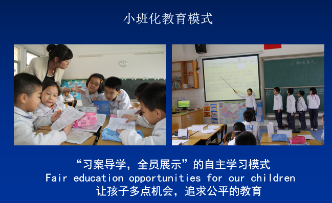 學(xué)校實施小班授課模式,每班不超30人,創(chuàng)新實施“習(xí)案導(dǎo)學(xué),全員展示”的自主課堂教學(xué)模式,最大限度地把學(xué)習(xí)的主動權(quán)還給學(xué)生;小班實行雙班主任制,全程關(guān)注學(xué)生的學(xué)習(xí)狀態(tài),作業(yè)實行面批,及時反饋學(xué)生的學(xué)習(xí)成果;實行分層走班和小組個性輔導(dǎo)。公平、個性、精致的小班教育已成為學(xué)校的核心教育優(yōu)勢。