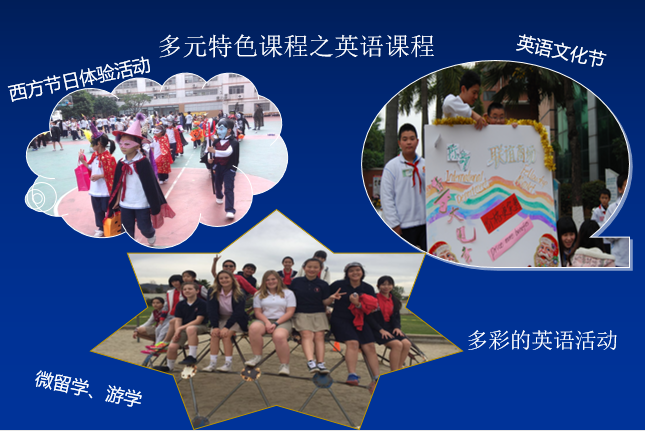 為了適應(yīng)小班化教育模式,學(xué)校創(chuàng)建了多元化課程體系,主要特色課程有:學(xué)習(xí)致用的英語課程、“每月一最”的德育課程、階梯分級的閱讀課程、全員學(xué)藝課程。