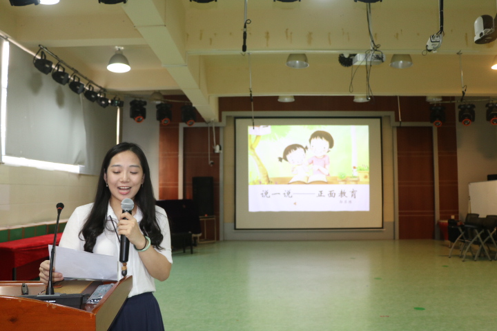 2016年10月14日下午5點,在公明中英文學(xué)校報告廳,《正面教育》讀書分享會正式開始。郭蘇陳、周琴、楊柳靜和徐敏紅等四位教師結(jié)合教育實踐,與全體教師分享了正面教育案例。全體教師在靜靜的聆聽中感受著正面教育帶來的力量。