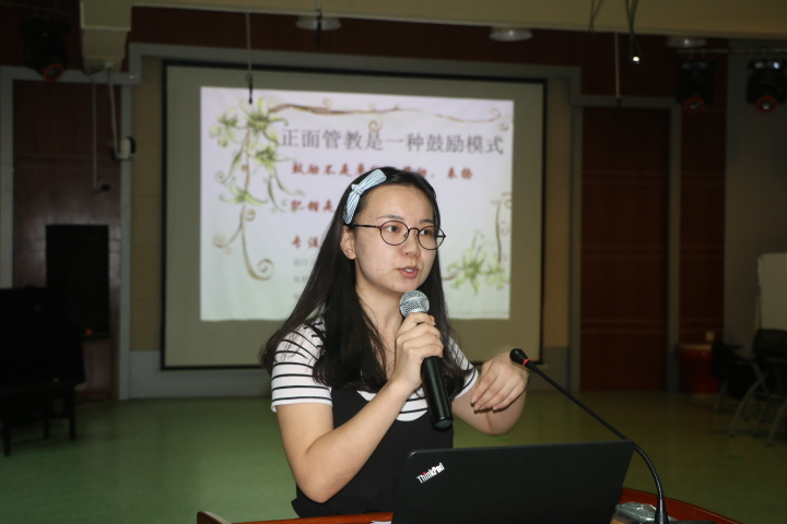 二年級的郭蘇陳老師說:“我每天都用微笑來迎接孩子們,給他們設(shè)置一個個美麗的‘圈套’,來引導(dǎo)他們快樂、健康地成長”!周琴老師則認為正面教育給大家?guī)淼氖且粍┬撵`雞湯,讓老師們意識到特殊孩子的特殊行為是孩子成長的需要,要和善而堅定地去鼓勵,才能有更好的效果。五年級的楊柳靜老師為她放手給孩子去管理班級找到了理論依據(jù),學(xué)生的責(zé)任感和自律意識在實踐中更能得到提高;徐敏紅老師結(jié)合學(xué)校實施的成長銀行D幣富翁評比操作總結(jié)道:“只要多一點尊重、充分相信孩子們的能力,換位思考;孩子們會回報給你一個驚喜”!四位老師的分享與教育教學(xué)實踐緊密結(jié)合,引發(fā)更多老師的思考,報告廳里,不時傳來陣陣掌聲。
