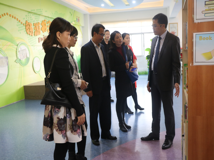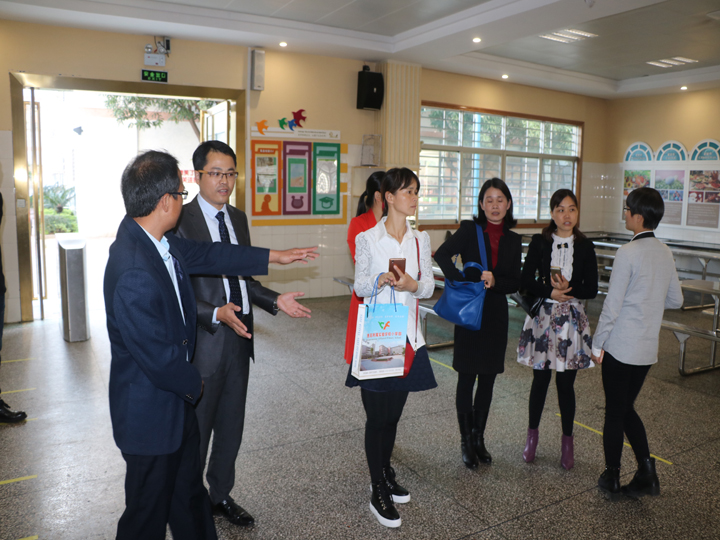 張建軍校長一行首先來到了學校的社會資源中心,陳志鋒校長介紹了學校的發(fā)展歷程。接著,大家一起參觀學校的食堂,陳校長介紹,學校在培養(yǎng)學生排隊就餐的意識和愛好閱讀的習慣,開設烹飪實踐課讓學生制作美食,感受勞動的樂趣。然后,學校藝術(shù)中心,參觀了樂器室,舞蹈室,學校對藝術(shù)教育的投入與成果讓惠高附小的領導們贊嘆不已。此外,惠高附小的領導們還參觀了學校的教師資源中心,培訓室,學習資源中心,教室,表示愿與公明中英文學校經(jīng)常交流、共同提高。(圖、文/林鉅豪)