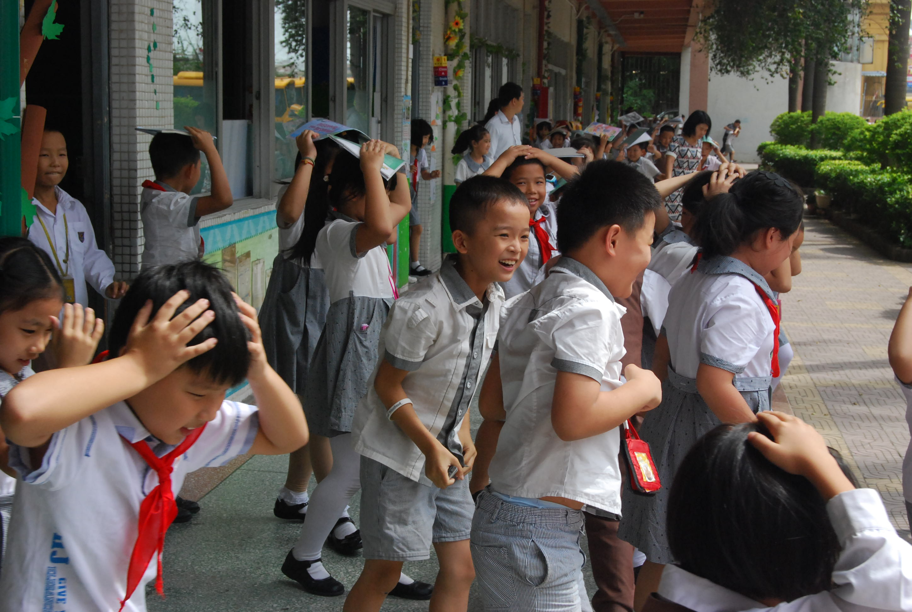 當(dāng)天上午,公明中英文學(xué)校校園廣播突然傳來類似墻體破裂的聲音,“有地震,大家快躲避”,隨著老師一聲令下,正在上課的同學(xué)們迅速雙手抱頭或頭頂書本躲到桌下,“現(xiàn)在樓體在晃動,同學(xué)們不要慌,就地找好掩護(hù)”,老師邊指導(dǎo)邊躲到墻角。一分鐘后,樓體晃動停止,緊急疏散鈴聲響起,同學(xué)們在老師的指揮下有序撤出教室,一手護(hù)頭、一手扶著欄桿,分列兩隊沿著指定的線路迅速下撤到集中地點,從疏散鈴聲響起到人數(shù)清點完畢用時不到4分鐘。(文/程俊)