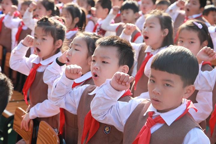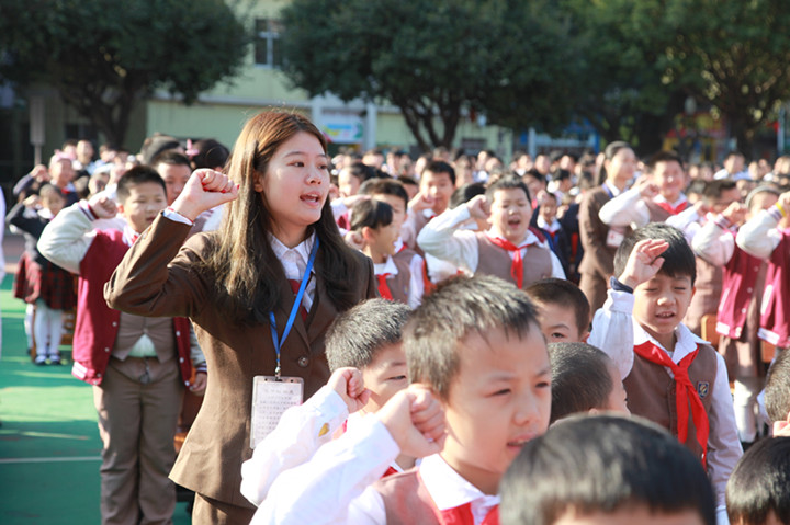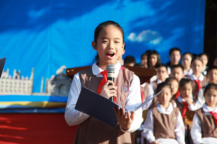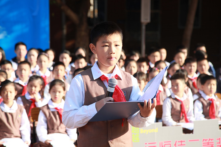 在升旗儀式上,金玉善副校長(zhǎng)為大家宣讀了《新學(xué)期公約》,為同學(xué)們的學(xué)習(xí)、行為、禮儀指明了方向;師生代表表演的詩(shī)朗誦《緊握世界的手,編織美好的夢(mèng)》,學(xué)生表演唱《青春修煉手冊(cè)》等,以聲情并茂、切合實(shí)際、輕松勵(lì)志深受師生的喜愛;師生“少年智則國(guó)智,少年強(qiáng)則國(guó)強(qiáng),我們會(huì),好好學(xué)習(xí)、天天向上,緊握世界的手,編織美好的夢(mèng)”的團(tuán)隊(duì)勵(lì)志呼號(hào)更是把活動(dòng)推向了高潮。會(huì)場(chǎng)氣氛熱烈、士氣高昂!