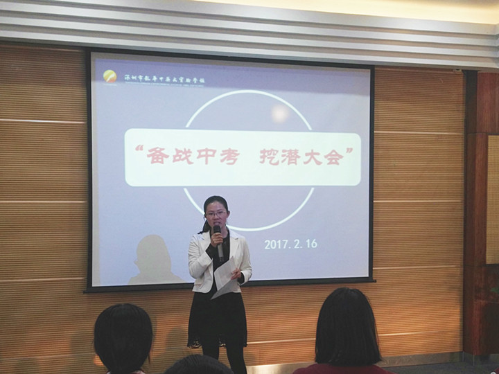 陽春二月,萬物萌發(fā),清風(fēng)拂面,木棉依依,在這孕育希望的季節(jié)里,我們聽到?jīng)Q戰(zhàn)的號角已經(jīng)吹響!為了增強(qiáng)初三學(xué)子迎戰(zhàn)中考的信心,以良好的精神狀態(tài)備戰(zhàn)中考,形成良好的學(xué)習(xí)氛圍,2017年02月16日下午在特級教師、初中部張翠玲主任,初中部德育領(lǐng)導(dǎo)李劍鋒同志的組織下,初三全體師生在三樓培訓(xùn)中心開展了以“備戰(zhàn)中考,挖掘潛力”為主題的中考備考活動。