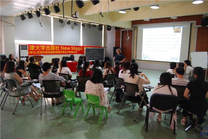 本次教研活動的主要參加人員為公明中英文學校的全體英語教師及部分兄弟學校的教師代表,培訓內(nèi)容主要是如何更好地運用”New Magic “ 的教材進行教學活動、如何通過有趣的游戲達到教學目標、如何營造主題環(huán)境讓學生獲取語言知識等。