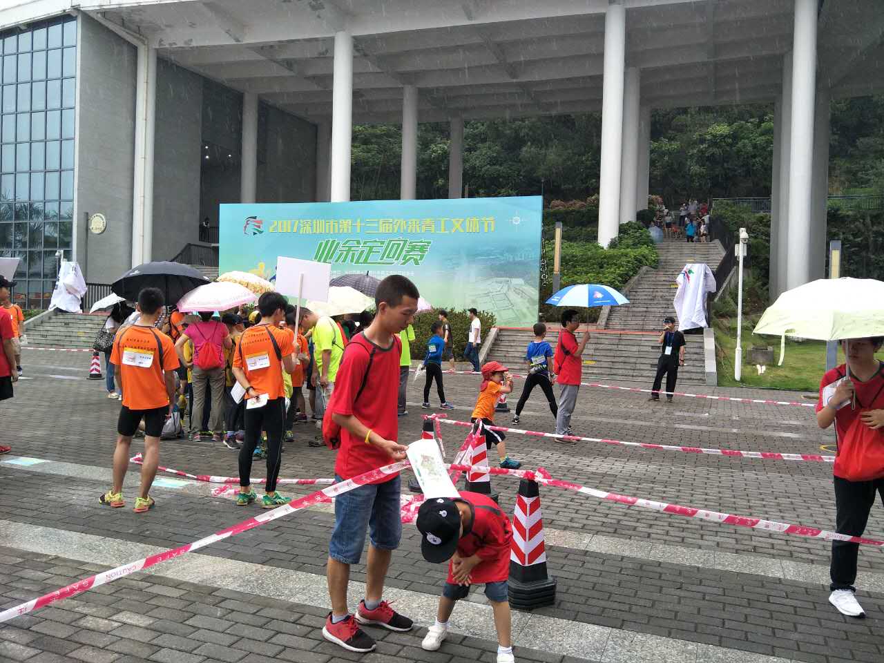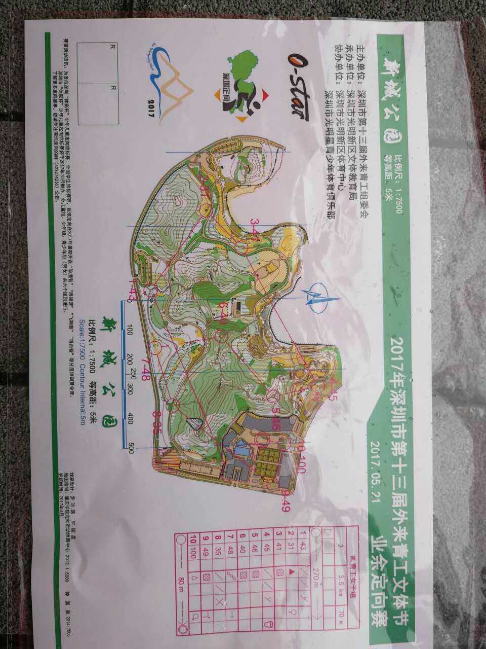 5月21日下午,在雨中,我校一行7人參加了2017深圳市第十三屆外來(lái)青工文體節(jié)定向越野賽。此活動(dòng)在綠樹成蔭的新城公園舉行,這次比賽吸引了許多市內(nèi)外定向越野業(yè)余愛好者前來(lái)參賽。 按照比賽規(guī)定,每位老師需要按照地圖,拿著指卡按順序找到地圖上所指示的各個(gè)點(diǎn)標(biāo)進(jìn)行打卡,以最短的時(shí)間到達(dá)所有點(diǎn)標(biāo)者為勝。我和不少老師一樣,都是第一次參加比賽,沒(méi)有任何經(jīng)驗(yàn),于是有經(jīng)驗(yàn)的陳老師和趙老師便將大家聚集在一起,教大家怎么看地圖、怎么更快找到點(diǎn)標(biāo)。