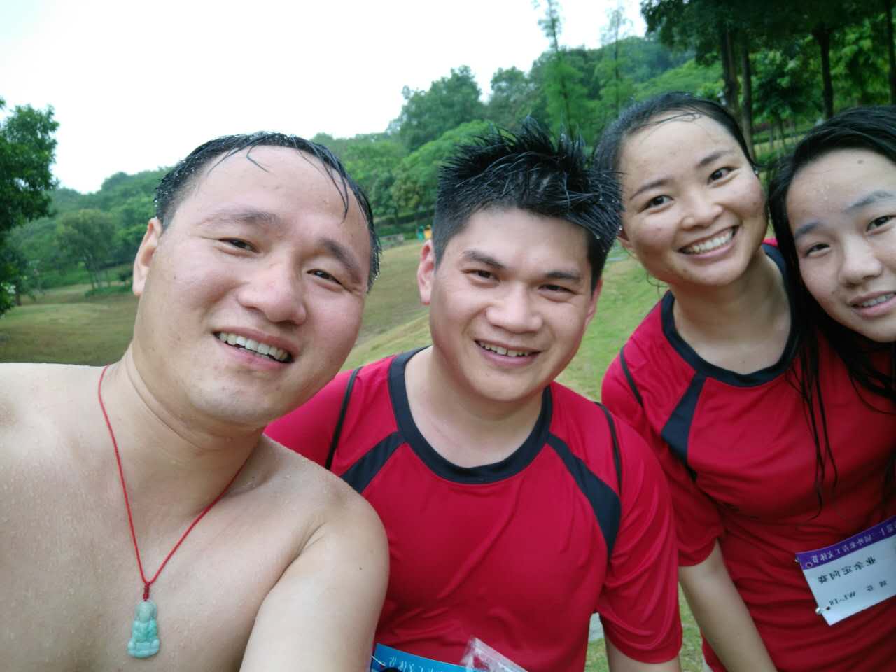 14:40,比賽開始,所有的參賽人員一個(gè)勁往前沖,天空依舊下起了大雨,而且越下越大,但是這雨勢(shì)絲毫沒(méi)有阻擋我們這群野外“運(yùn)動(dòng)”愛好者奔跑的步伐,一路上遇到了許多穿著雨衣的參賽者,可對(duì)于沒(méi)有攜帶任何雨具的我們來(lái)說(shuō),淋著大雨往前跑是一種暢快;是一種灑脫;更是一種釋放,特別是陳雪仁老師,打著赤膊在雨中奔跑。為了第一個(gè)指卡點(diǎn),幾乎所有的選手花了十多分鐘才找到,此時(shí)才發(fā)現(xiàn),這比賽考驗(yàn)的可不僅僅是身體素質(zhì),更重要的是學(xué)會(huì)看圖,有方向感,能準(zhǔn)確找點(diǎn),此時(shí),我吃明白這項(xiàng)運(yùn)動(dòng)難怪叫做“定向”。