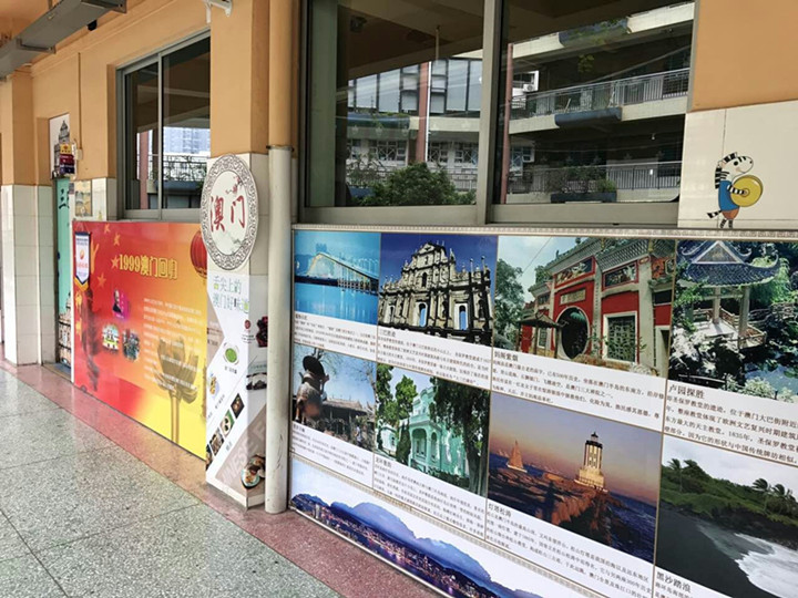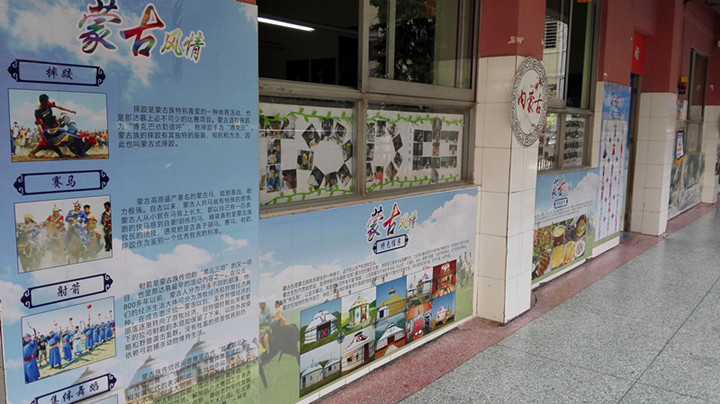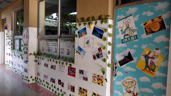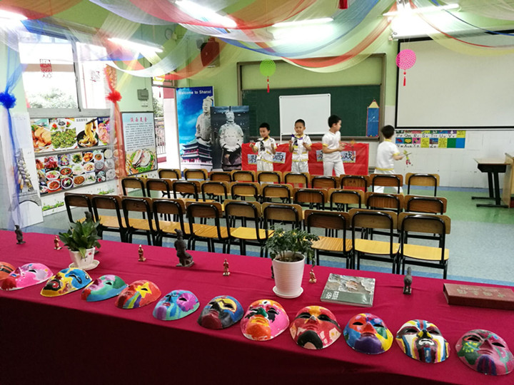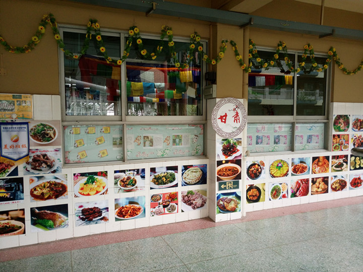 走進國際部,到處閃耀著中華傳統(tǒng)文化的光芒,凸顯出國際部的特色教育,學生耳聞目睹的都是各省優(yōu)秀文化載體:走進一樓,最搶眼的是富有節(jié)日氣息的裝飾門,巨幅對聯(lián)寫著“品鑒中華美食蘊養(yǎng)民族大情懷,傳承千古文明拓展學子寬視野?!弊咴谕ㄍ鶉H部的大道上,映入你眼簾的是一塊塊圖文并茂的國際班各班飲食文化和風土人情展版,彌漫著書香翰墨,散發(fā)著文化節(jié)的獨特魅力,濃縮了各位正副班主任的智慧;走廊、教室上空的彩旗、彩帶、彩蝶迎風飄揚,訴說著美好的辦學愿景;每個教室不同的主題和個性營造了濃濃的中華文化氛圍。