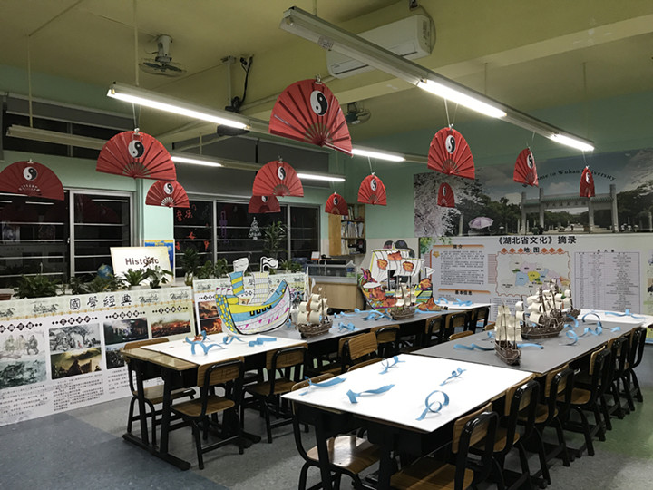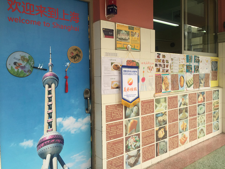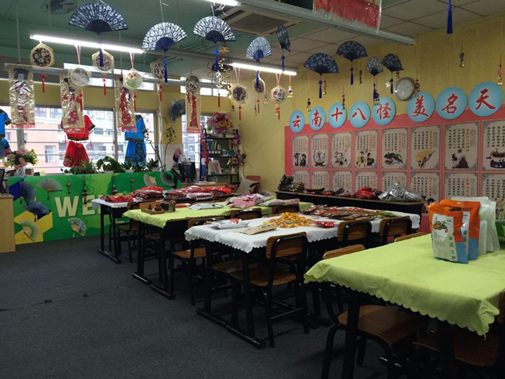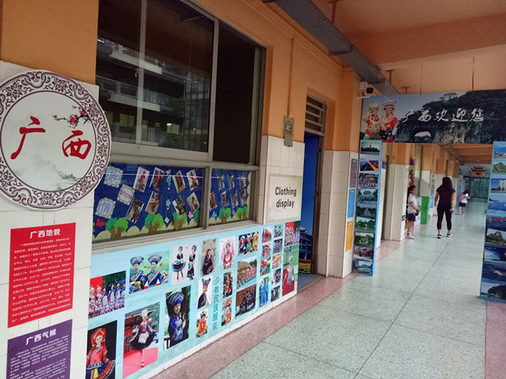 “地域文化創(chuàng)設評比”內容,國際班每班選擇一個省份(班際間不重復),以飲食文化為核心,配以相關的風土人情展示,采用彩打圖片、繪畫、實物展示或模型等布展進行班級文化布置。2017年5月16日,學部領導金玉善副校長、學部張丹、馬定云德育領導,年級主任羅賢娟、馮潔萍、歐陽新建、王紅領老師等評審組成員對各班的“地域文化創(chuàng)設”進行檢查評比。
