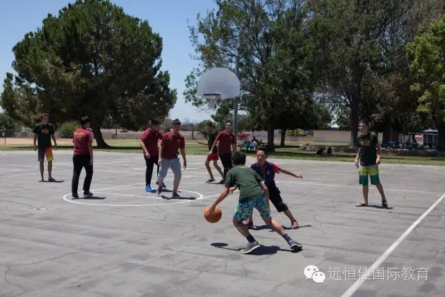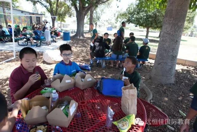 學校上課注重學術(shù)的同時,也十分注重學生們體育的素養(yǎng)和體能的培養(yǎng),午間的美國學校沒有午休時間,午飯休息后,便開始了體育活動時間。在這里,同學們充分的享受加州的陽光。