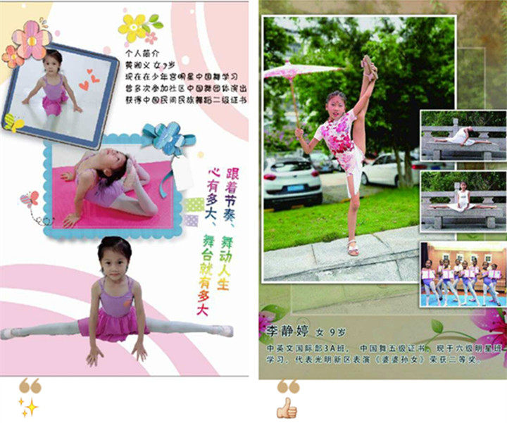 學(xué)員在集體活動(dòng)中的點(diǎn)滴進(jìn)步和突出表現(xiàn),要發(fā)揮榮譽(yù)的激勵(lì)作用,這對(duì)孩子參與更多的活動(dòng)有很大的激勵(lì)作用,這些東西能夠幫助孩子形成強(qiáng)烈的榮譽(yù)感,能夠成為孩子參與活動(dòng)的無形動(dòng)力。所有成功的背后都是苦苦的堅(jiān)持,只要你愿意、只要你努力、只要你堅(jiān)持,總有一天你也會(huì)成為明星哦!