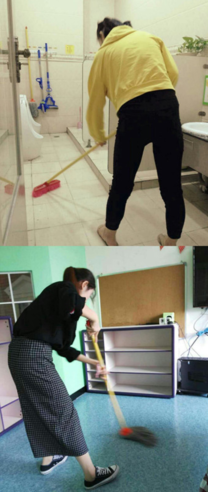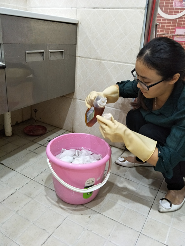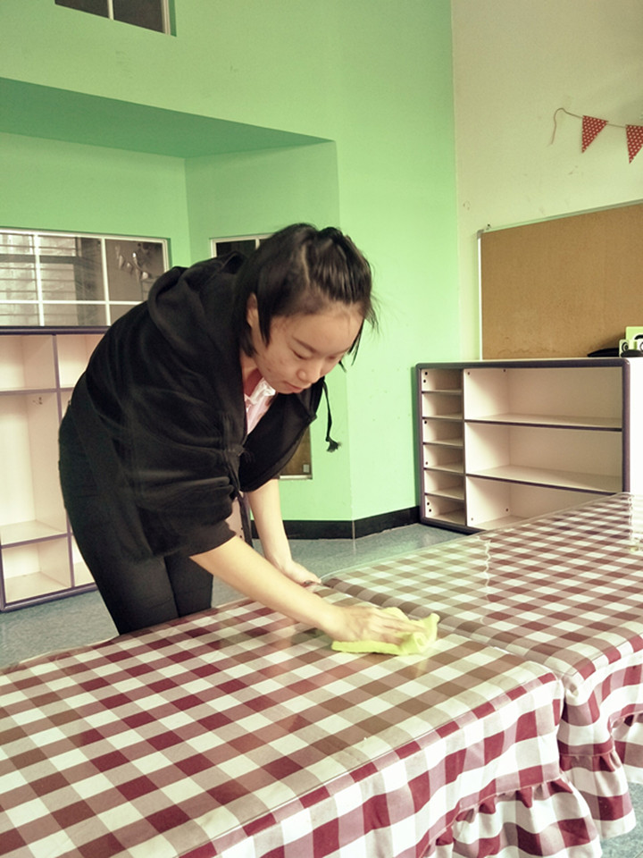 5、對(duì)于教室的地板、公共區(qū)域的地板、餐廳的地板先用消毒水拖,再用清水拖。