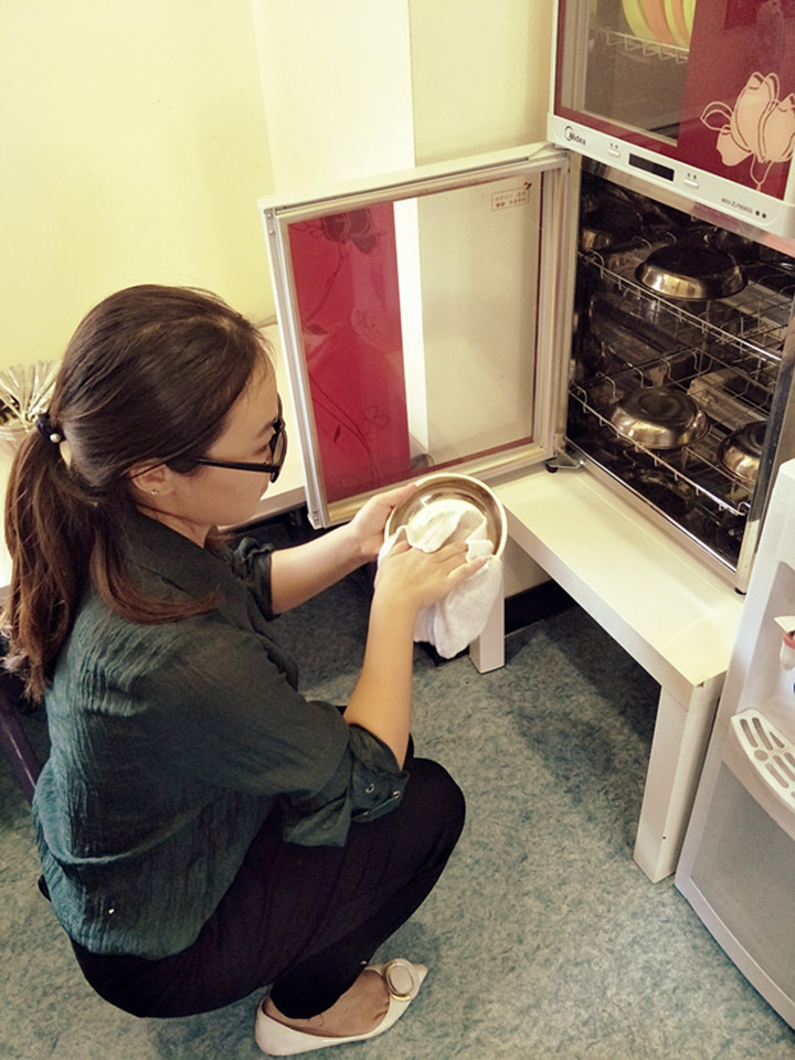 6、孩子進(jìn)餐的桌子飯前消毒飯后清干凈;孩子的餐具,每餐使用后都會(huì)清洗干凈再放入消毒柜消毒。