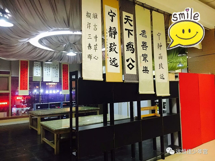 溫主任向來賓介紹美術(shù)區(qū)、介紹遠(yuǎn)方美術(shù)有那些項(xiàng)目?書法、素描、創(chuàng)意美術(shù)、動(dòng)漫、國畫。