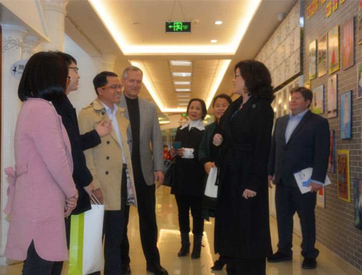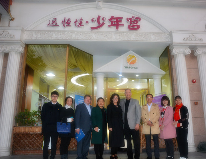遠(yuǎn)恒佳教育集團(tuán)外事部部長宋騰先生帶領(lǐng)美國南岸學(xué)校校董夫婦Glenn Duncan &Holly Duncan、海外國際學(xué)校校長Bert Johnson、促進(jìn)部主任 Jane Zhu一行人來到遠(yuǎn)恒佳少年宮參觀指導(dǎo),溫主任向來賓詳細(xì)介紹了遠(yuǎn)恒佳少年宮的基本情況。