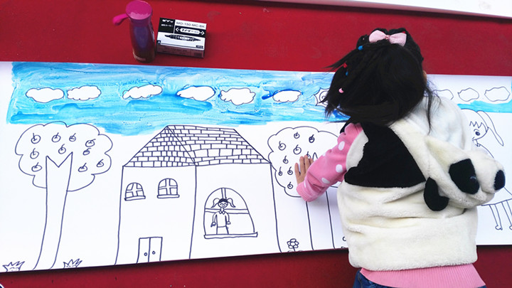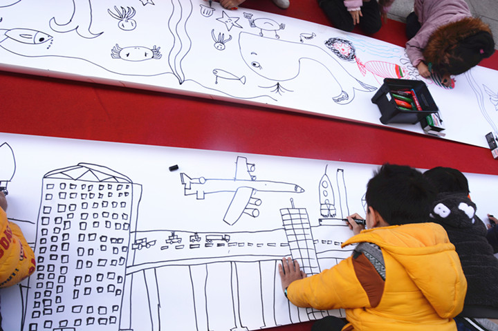 百米畫卷已準備就緒,就等小朋友們閃亮登場了。