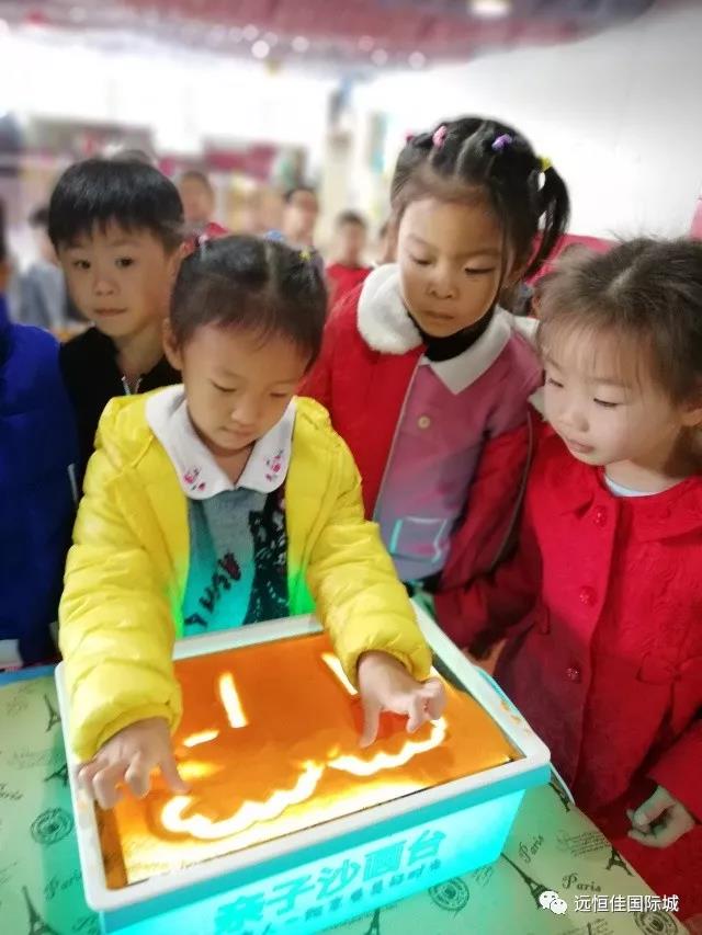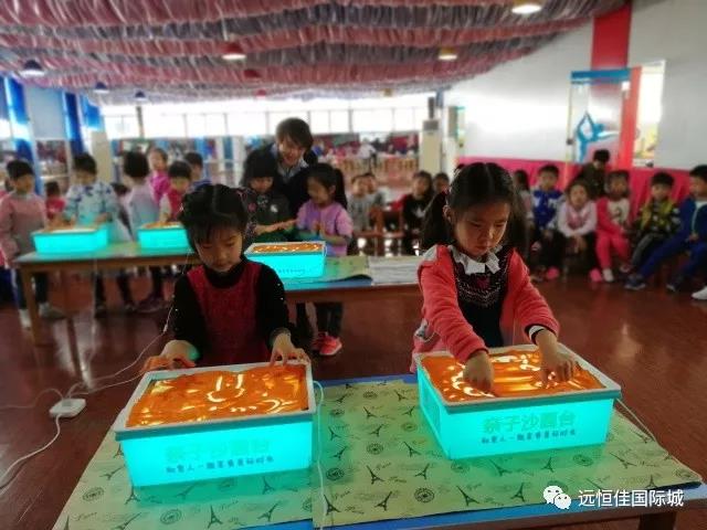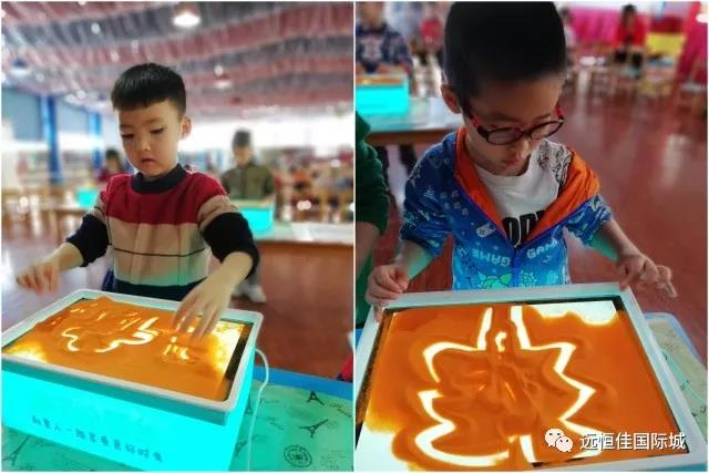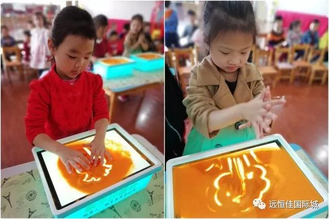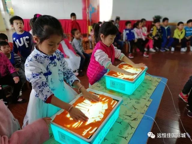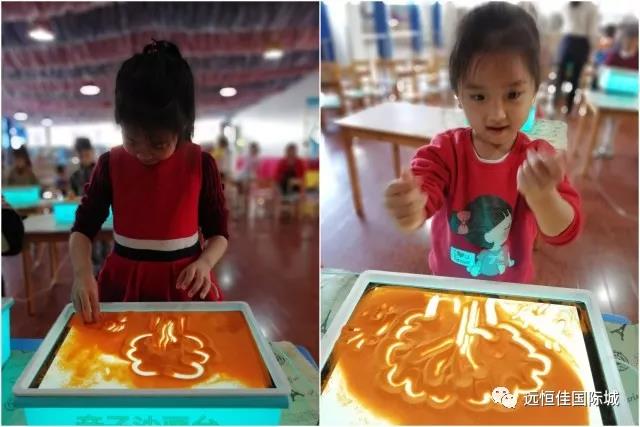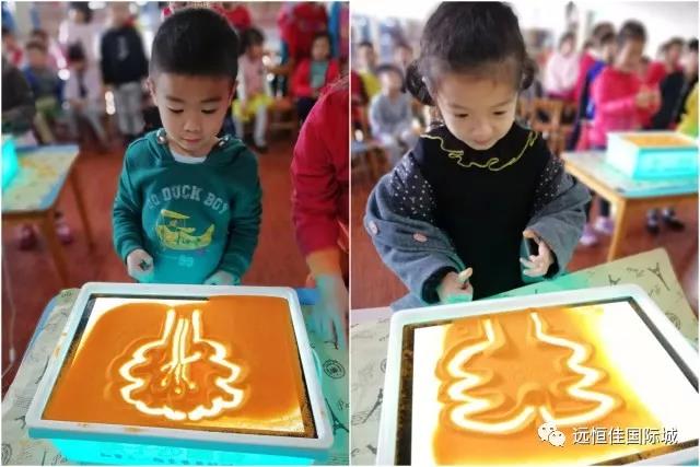 這是小朋友們第一次接觸沙畫哦!看,普通的一捧沙子,到了小朋友的手里,就變成了各種有趣的圖案