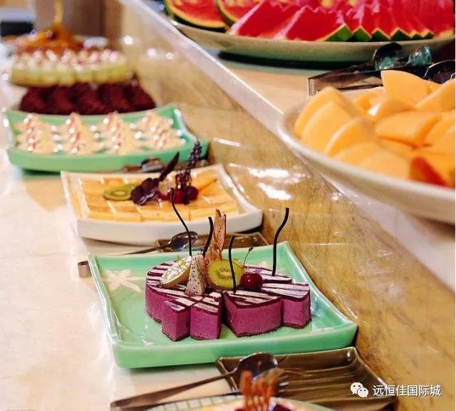 自助點(diǎn)心 水果蔬菜沙拉、蛋糕餅干、果汁飲料、零食甜點(diǎn)等。
