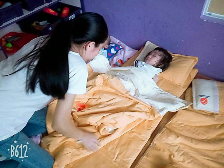 3、午睡時,會進(jìn)行午檢,及時發(fā)現(xiàn)不舒服的孩子,孩子入睡時,老師會進(jìn)行巡視,并幫那些沒蓋好被子的孩子蓋好被子。