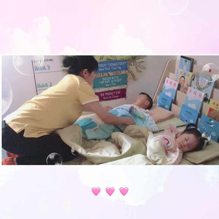 午睡時(shí),會(huì)進(jìn)行午檢,從體溫口腔五官身體,及時(shí)發(fā)現(xiàn)不舒服的寶寶;孩子入睡時(shí),班級(jí)老師會(huì)進(jìn)行巡視,并幫孩子蓋好被子,以防著涼。