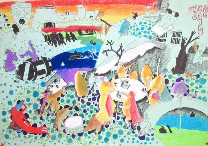 孩子們將自己在感受外物時(shí)儲(chǔ)存在腦海里的記憶翻找出來,然后以“稚嫩”“天真”的方式抽象地表達(dá)出來。