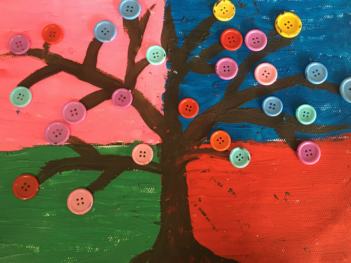 圖一是來自創(chuàng)意美術(shù)A班麥瑩希的作品《扣子樹》,特別的有創(chuàng)意。