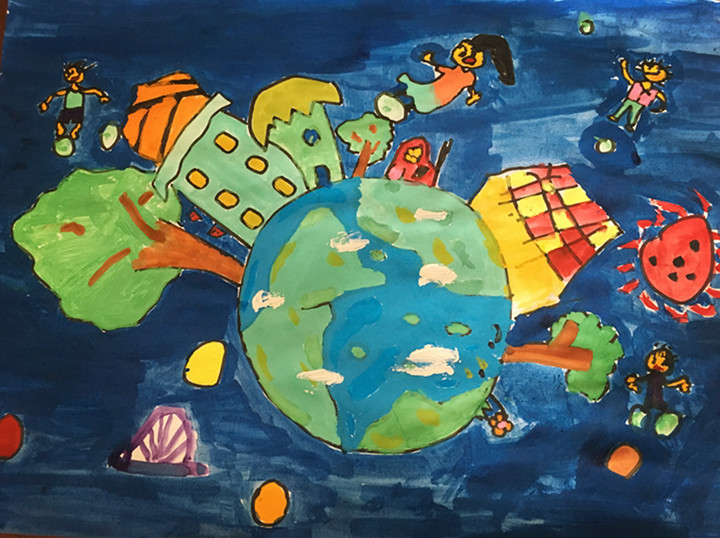 圖三是來自創(chuàng)意美術(shù)A班吳從政的作品《地球上的一家人》,小小年級(jí)就很有環(huán)保意識(shí),值得表揚(yáng)哦~