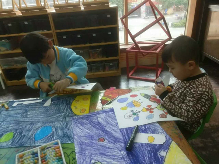 在創(chuàng)作中給孩子適當(dāng)?shù)牧舭祝尯⒆幼杂慑塾卧谒囆g(shù)宇宙中發(fā)展。