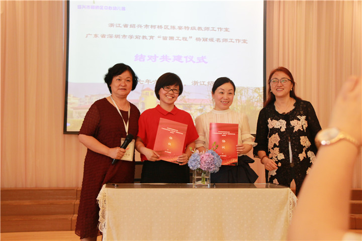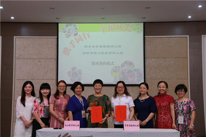 本次研修還促成紹興市柯橋區(qū)中心幼兒園、桐鄉(xiāng)市茅盾實驗幼兒園與深圳市南山區(qū)教育幼兒園確立了長遠的合作伙伴關系,并舉行了隆重的簽約儀式。